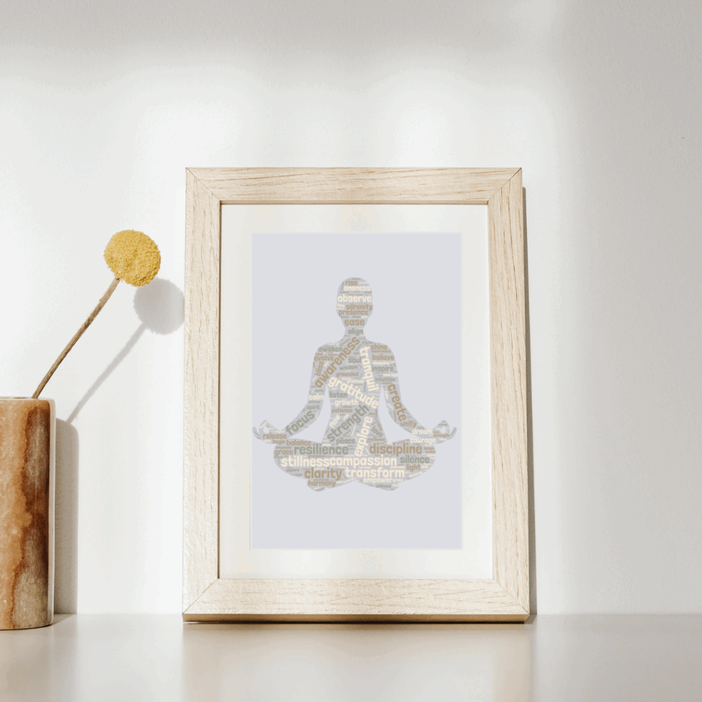 A calming silhouette filled with inspiring words like breathe, balance, and peace. Perfect for yoga spaces, mindfulness corners, or as a gentle daily reminder. Print and enjoy!